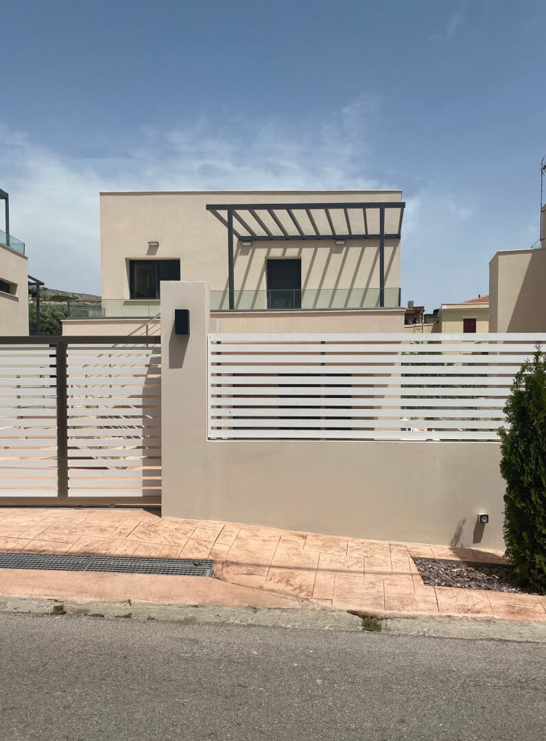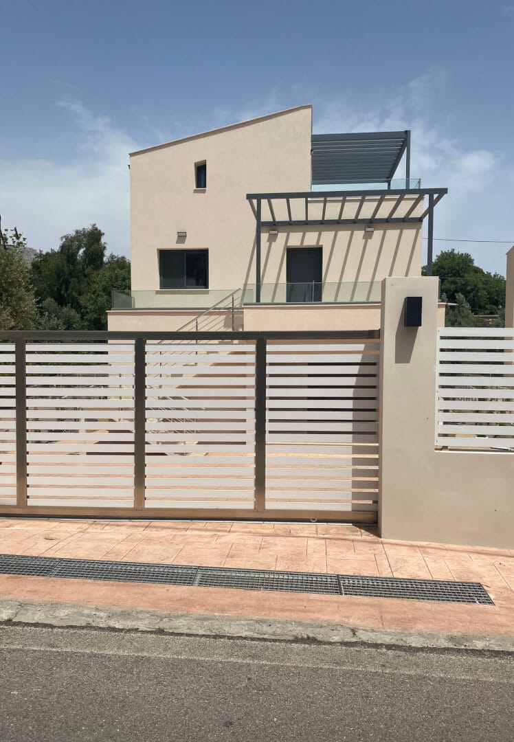 Each residence is fitted with a private elevator connecting all levels, intercom systems, and a separate pedestrian entrance. The vehicle entrance is secured with an aluminum electric gate operated via remote control and Somfy automation. Regular TV antennas are installed.